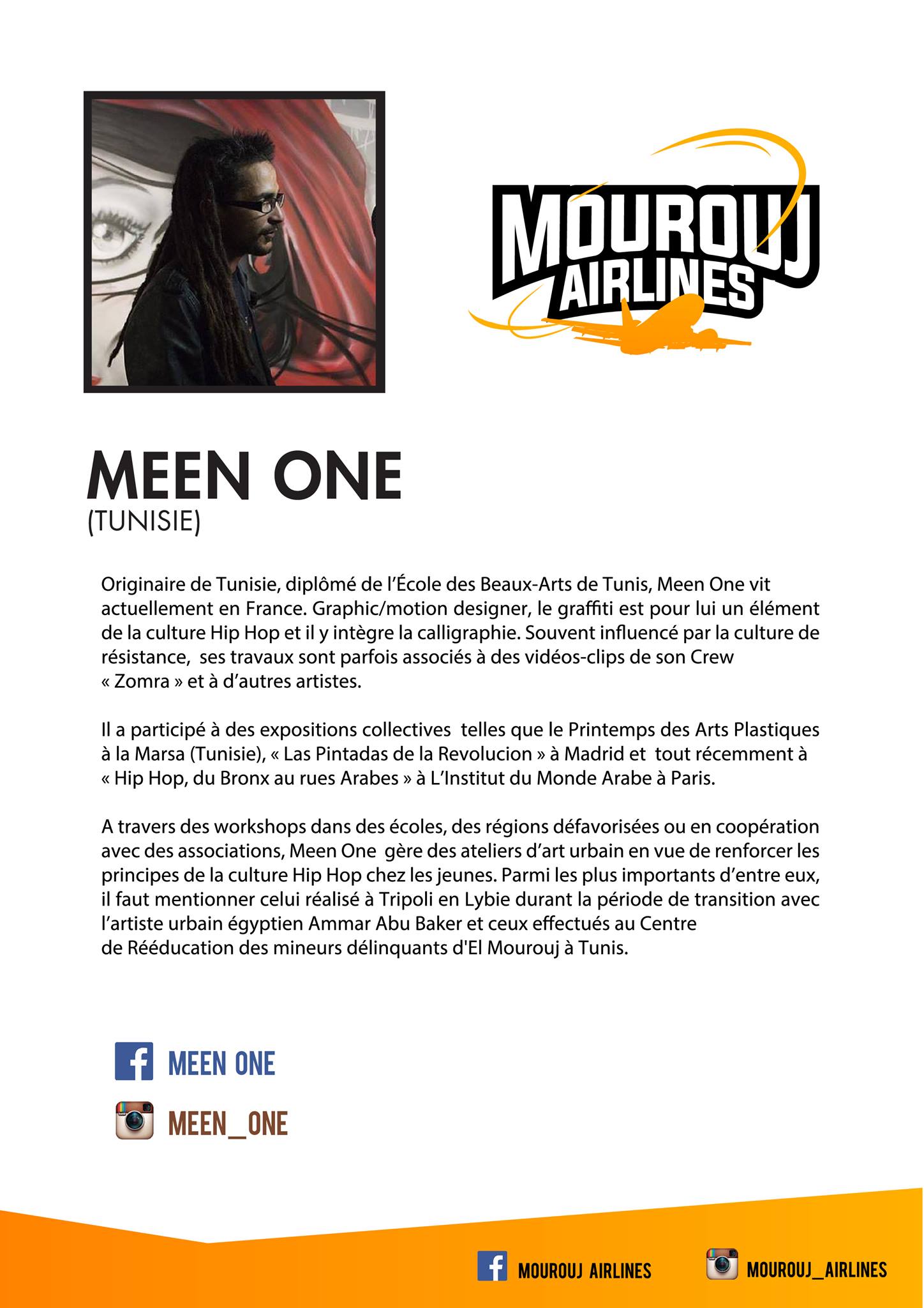 MOUROUJ AIRLINES est un événement proposé par KIF KIF INTERNATIONAL (France), l’Association des Habitants de Mourouj 2 (Tunisie) et l’Agence Nationale de Protection de l’Environnement (Tunisie) TUNISIE.
