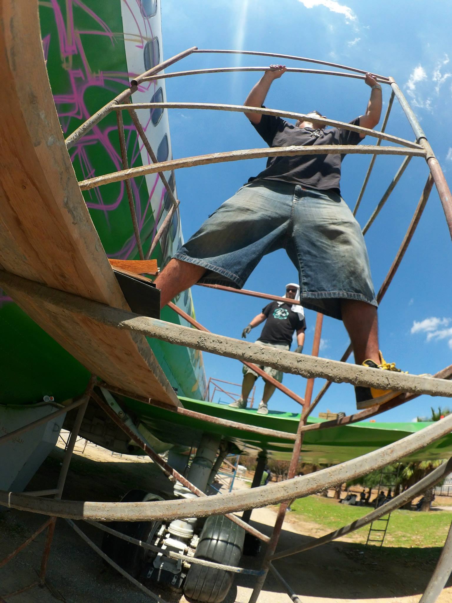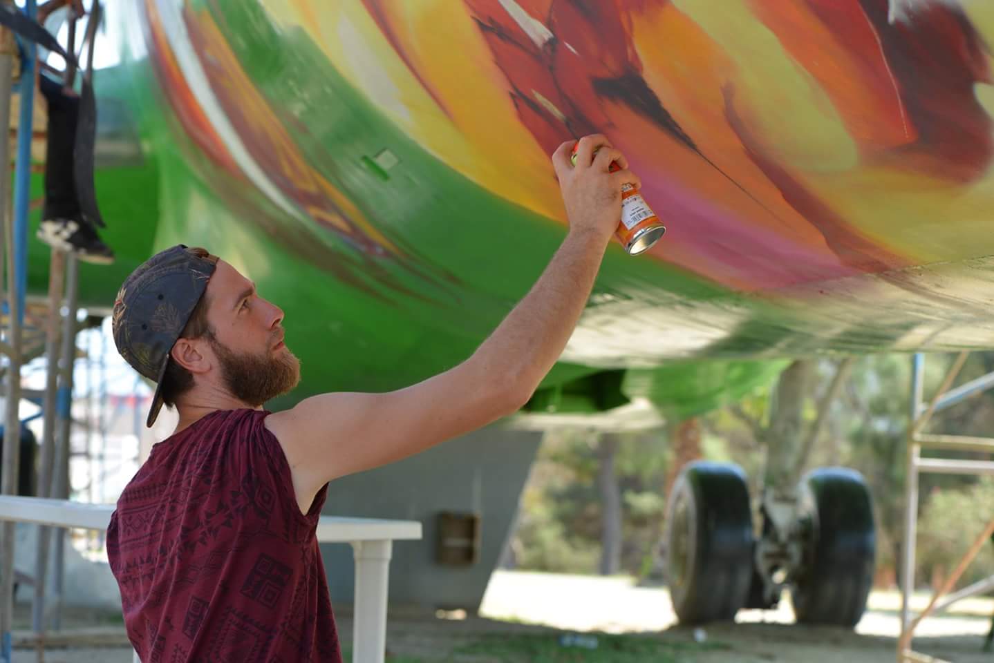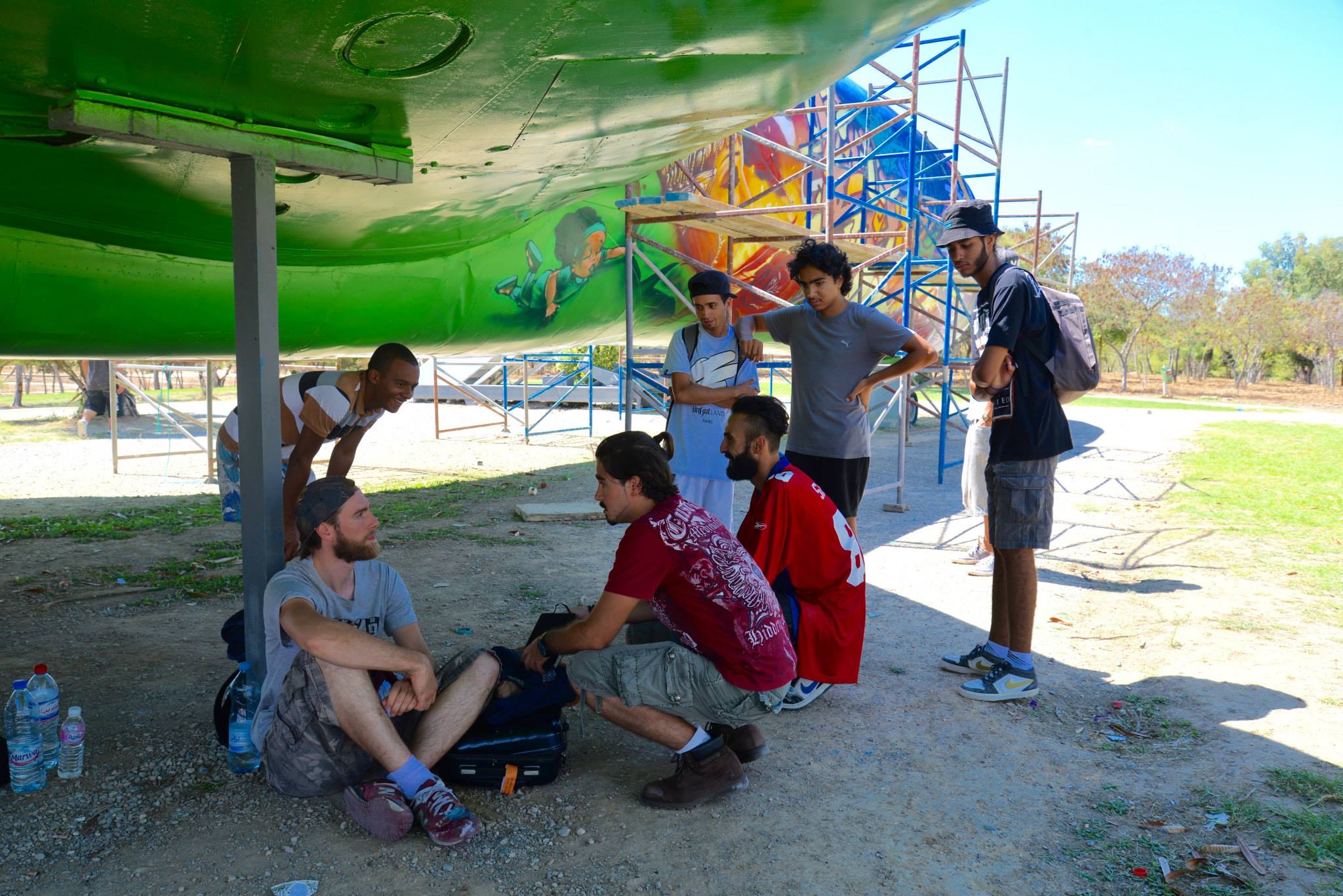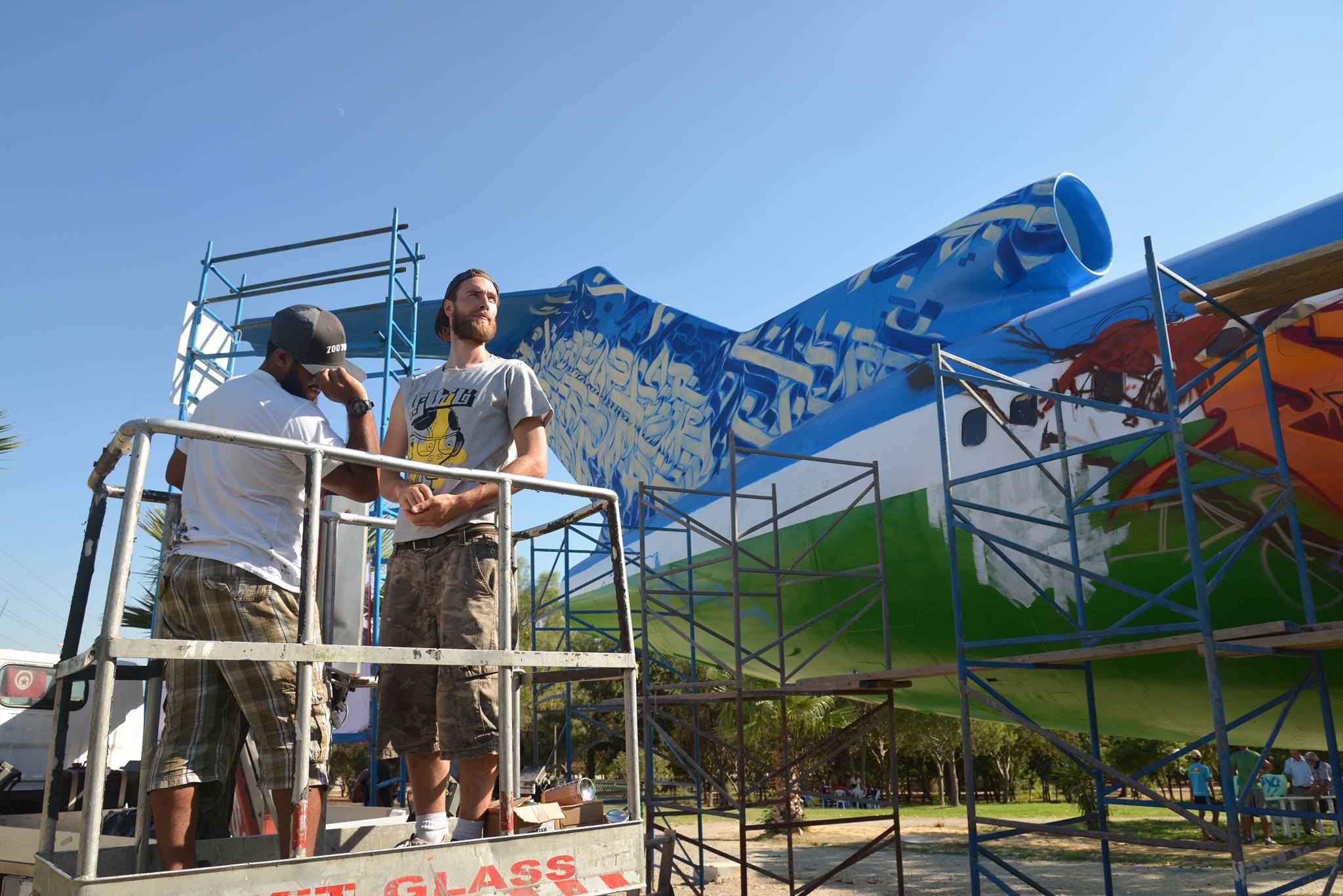Notre mission ? redonner vie et de la couleur au BOEING délaissé à l’entrée du parc. Pour cela 5 artistes tunisiens et 5 artistes français se sont allié.