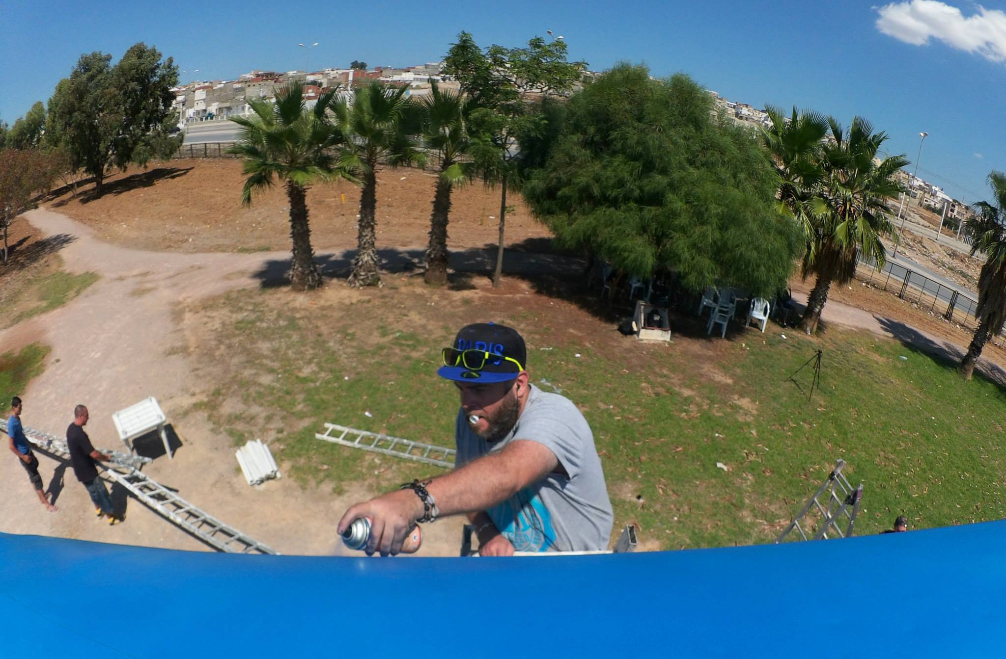 Mais pour découvrir ça il faut voyager voir de ses propres yeux et surtout rencontrer les gens, parler avec eux. Évidement les clichés existes aussi en Tunisie, barbu=extrémiste, noir=esclave mais cet événement était là aussi pour casser tous ces clichés. C’était pour moi le plus important, la peinture reste secondaire. Je terminerais par #fuckclichés #fuckterrorisme 🙂
