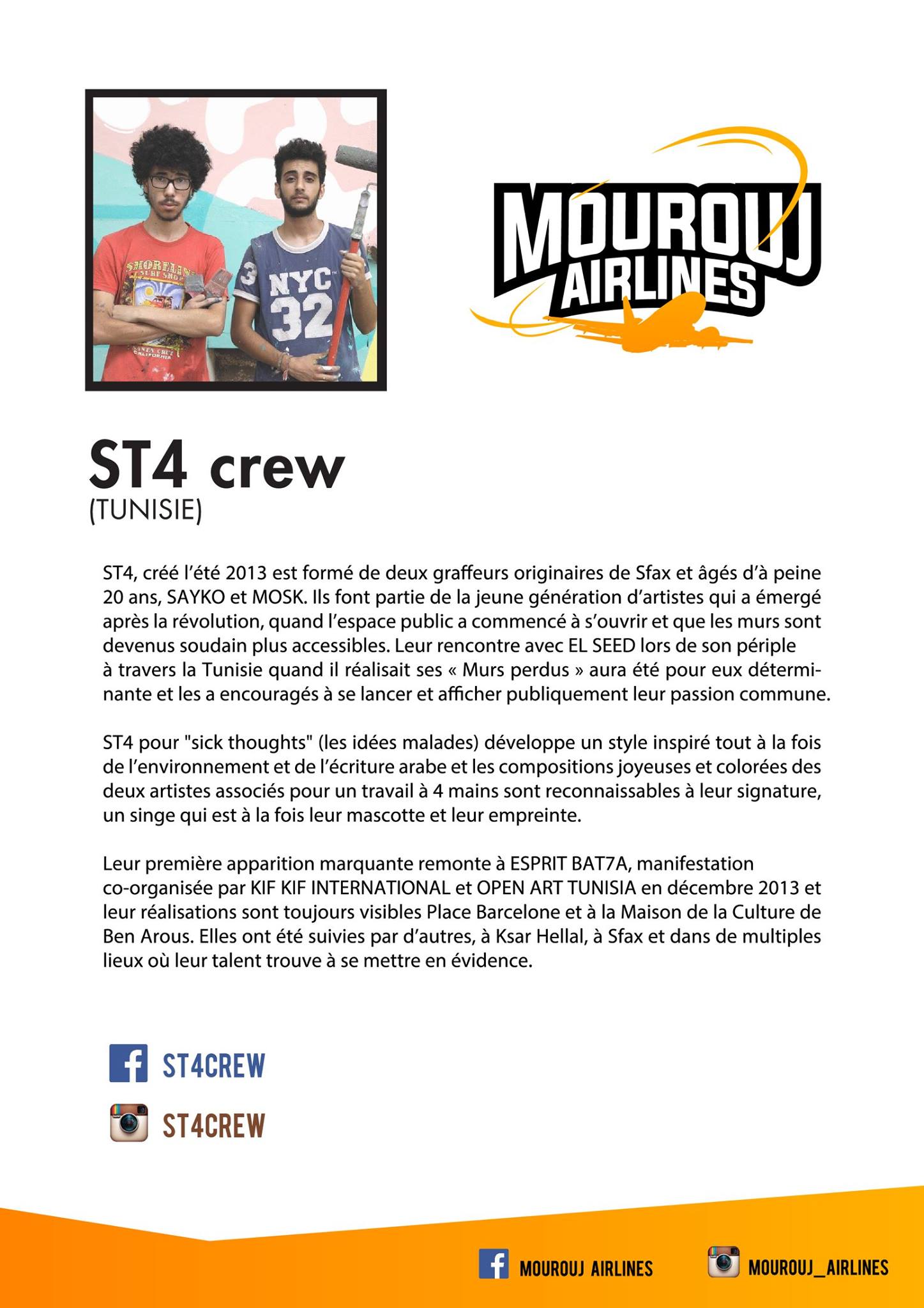 Les jeunes artistes tunisiens avec qui nous avons partagé cette aventure sont en quelque sorte les pionniers de l’histoire du graffiti Tunisiens…Artistes à suivre…