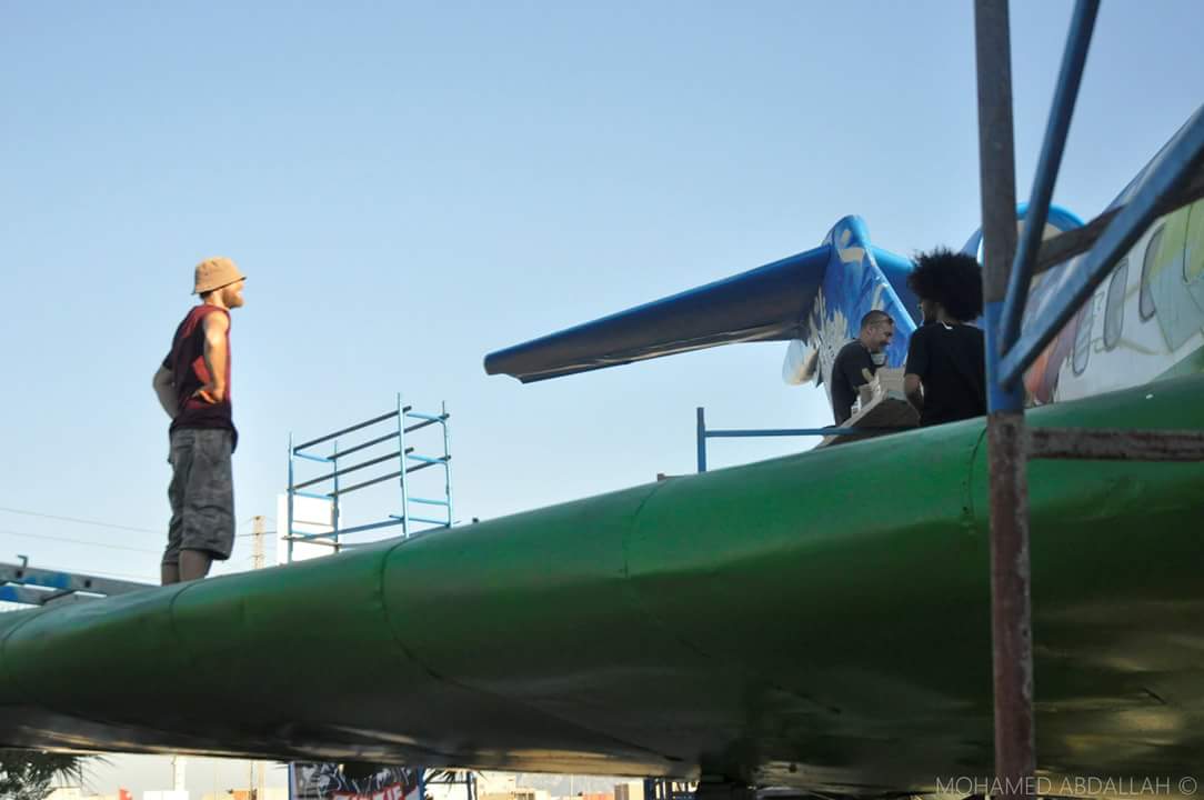 Notre mission ? redonner vie et de la couleur au BOEING délaissé à l’entrée du parc. Pour cela 5 artistes tunisiens et 5 artistes français se sont allié.